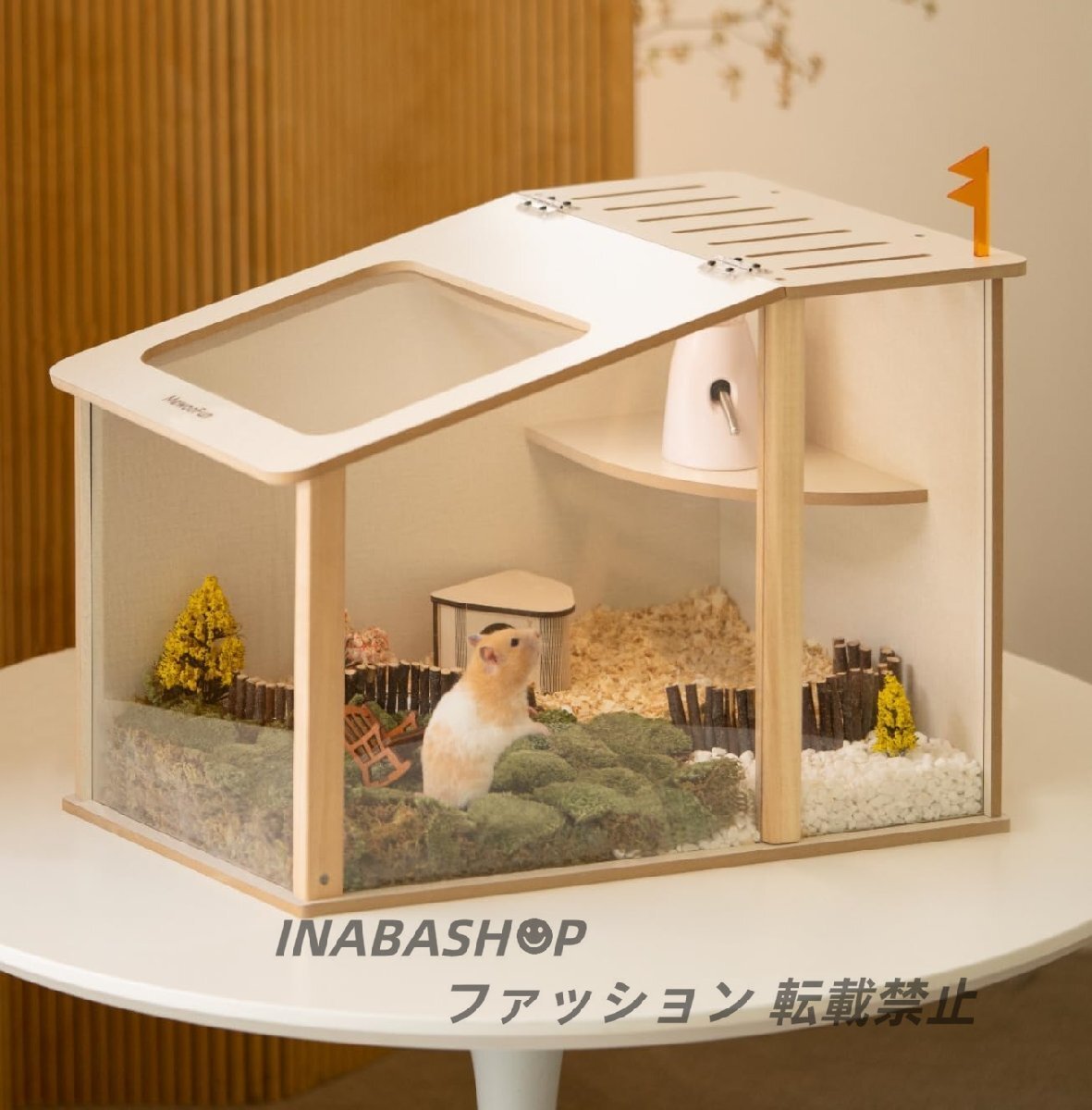 - ハムスターケージ 巣箱 飼育ケージ ハムスターハウス 木製 アクリル製 大型 天井扉 お掃除しやすい 組立式 持ち運びやすい 透明 爬虫類など