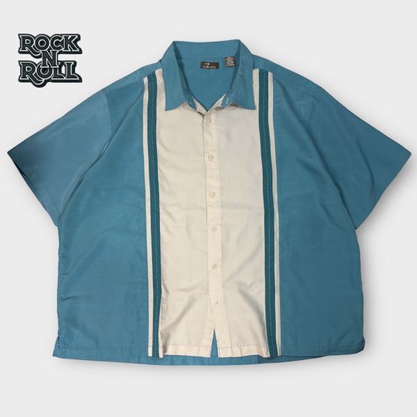 > ★50'Sスタイル★キングサイズ★切替しステッチライン刺繍★Cafe Luna 半袖シャツ size3XL スリット ロックンロール 古着 洗濯済み 779
