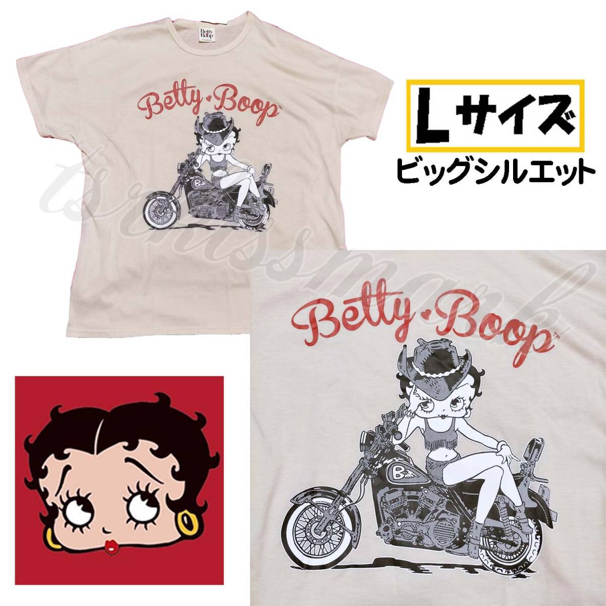 - 【Lサイズ】ベティブープ ベティちゃん 半袖Tシャツ 丸首 ベージュ バイク