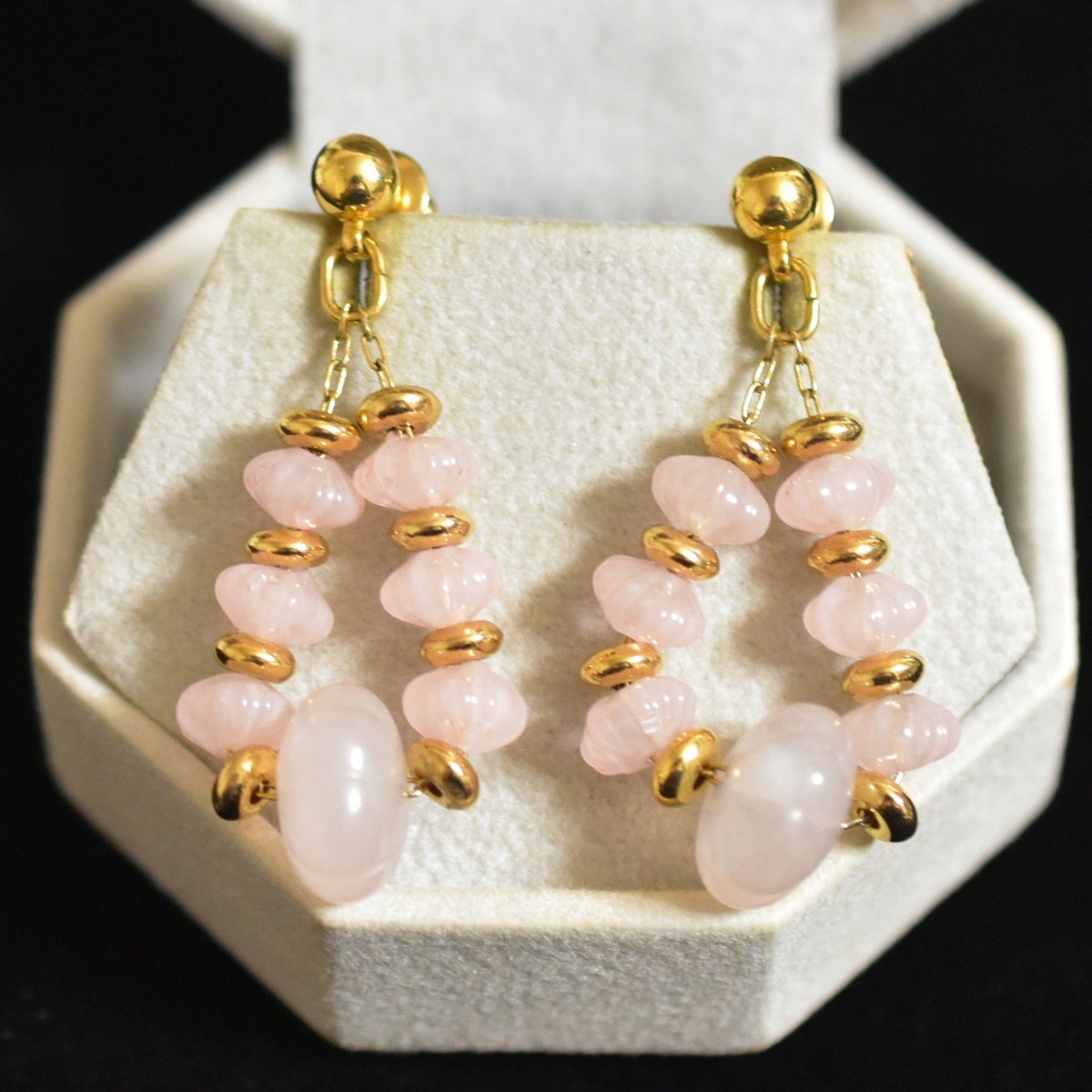 - アンティーク/ヴィンテージ アクリル/樹脂の淡いピンクが可愛いピアス 本物保証