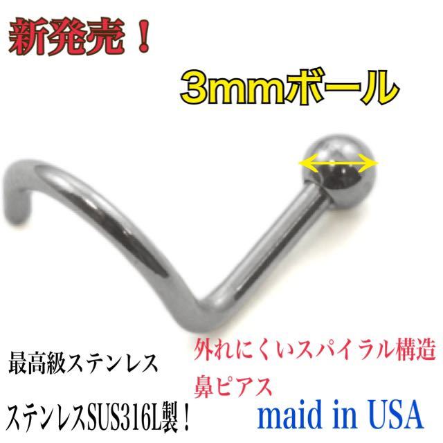 - 送料無料!新作!格安!3ミリボール!外れにくいスパイラル式!鼻ピアス ボディピアス