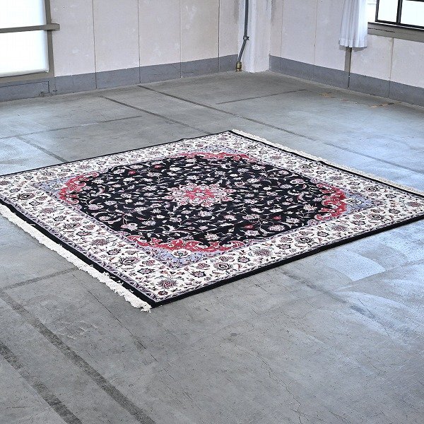 - 新品 未使用 パキスタン製 手織り絨毯 正方形 メダリオン柄 ウールラグ ペルシャデザイン マット カーペット リビング 応接室 書斎 P-31