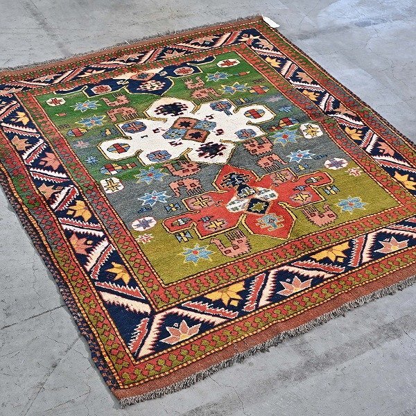 > 新品 未使用 パキスタン製 手織り ウールラグ 絨毯 メダリオン柄 ハンドノット 羊毛 カーペット インテリア リビング 応接室 書斎 P-90