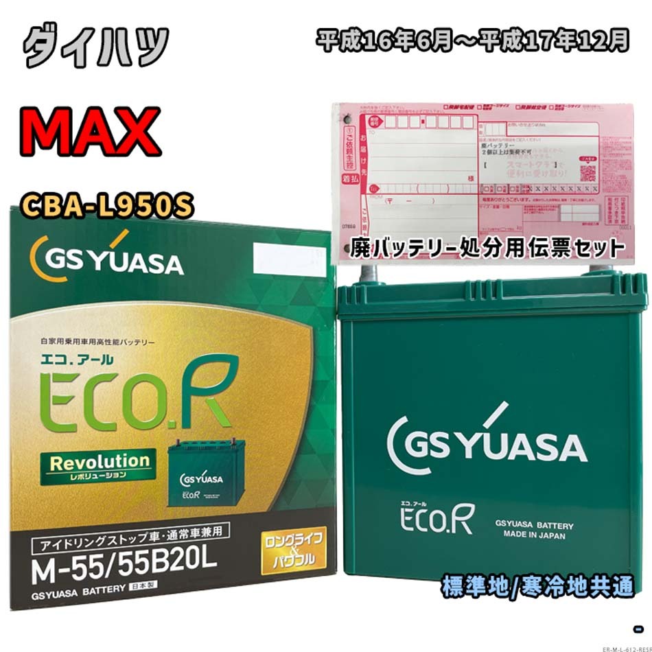 - バッテリー GSユアサ ER-M-55/55B20L 廃バッテリー回収サービス付 ダイハツ MAX CBA-L950S 平成16年6月~平成17年12月 対応 M-42 互換 612