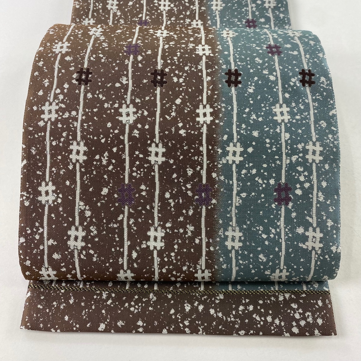 > 袋帯 美品 秀品 井桁 縞 茶色 六通 正絹 【中古】