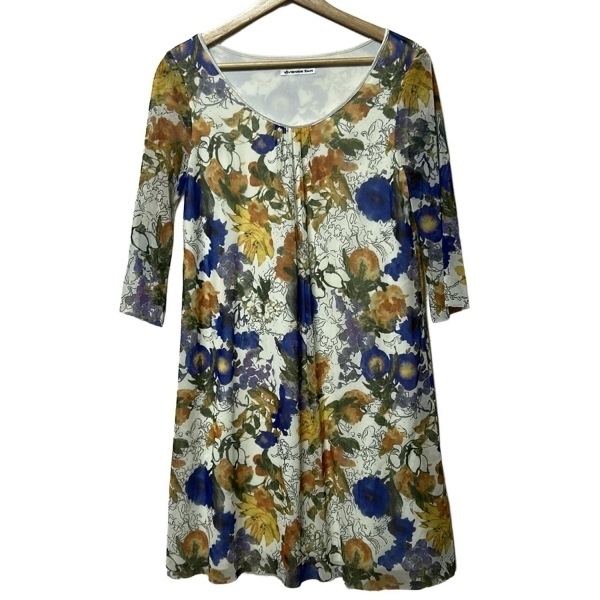 - ヴィヴィアンタム VIVIENNE TAM サイズ1 S - 白×ブルー×マルチ レディース クルーネック/七分袖/ひざ丈/花柄 ワンピース
