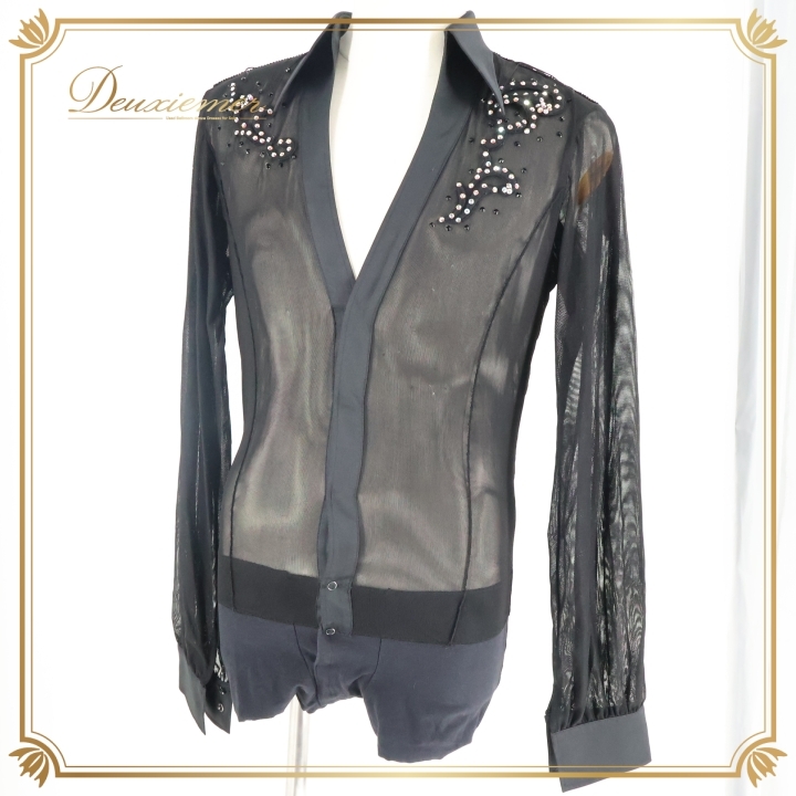 - 社交ダンス 衣装 ラテン シャツ タカダンス 黒 L 男性用 メンズ 練習着 ブラック系 TAKADANCE 日本製 ラインストーン イベント 発表会 舞台