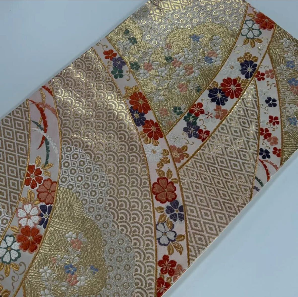 > 【楓】袋帯 正絹 文様流し 素敵な花 六通 KU-5256