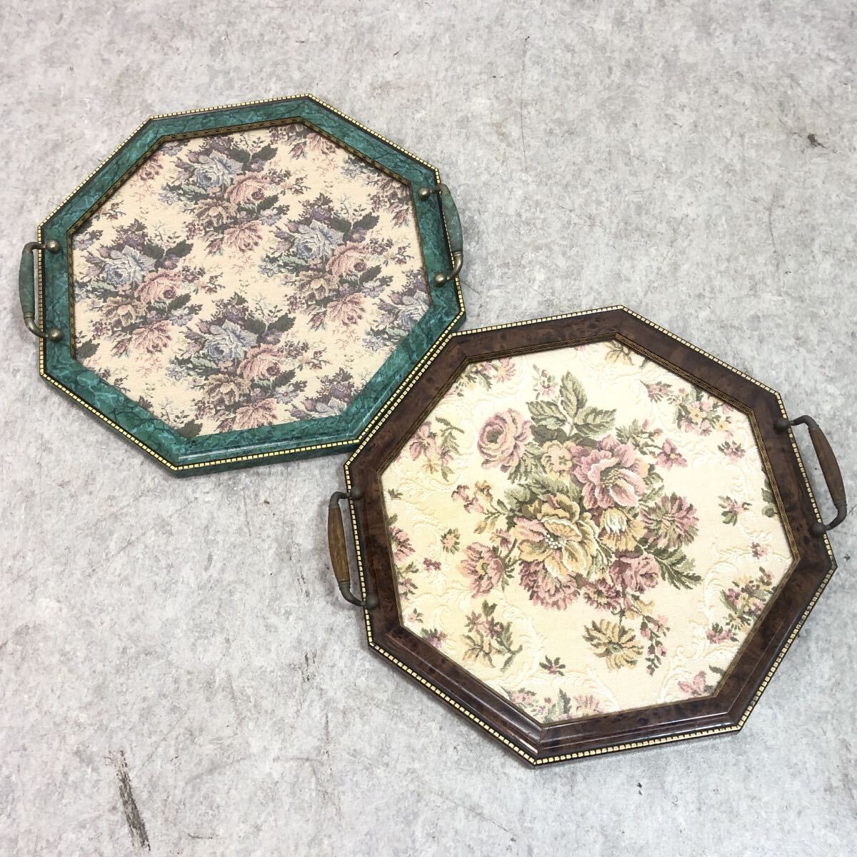 - □ 2点セット ゴブラン織り トレイ トレー イタリア製 花柄 アンティーク調 お盆 木製 フレーム 八角盆 ゴブラン織 まとめて □25082001Y