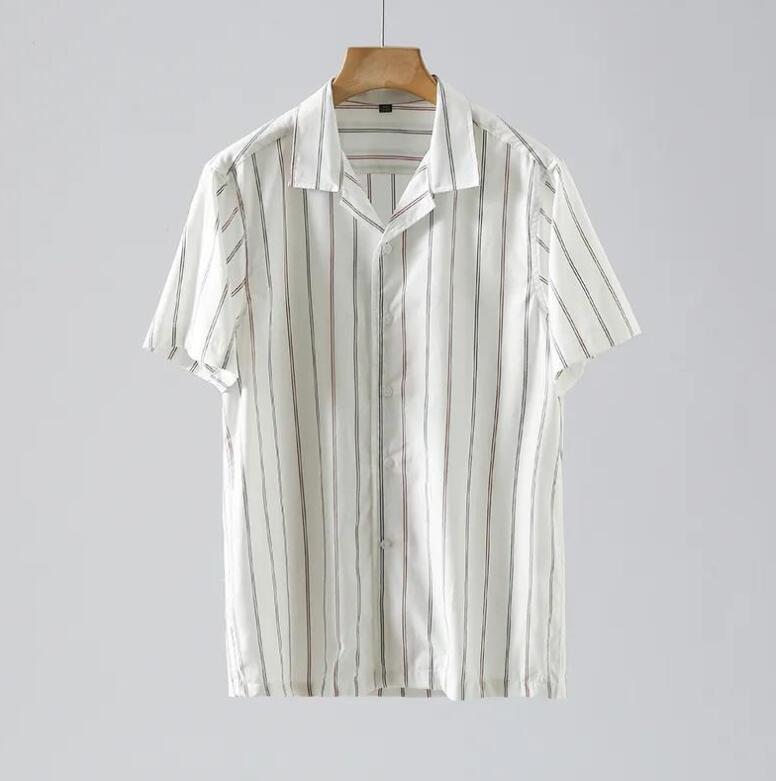 - 新入荷新品 オープンカラー 半袖 シャツ サマー ストライプ メンズ 綿 コットン 盛夏 春夏 ゆったり 薄手 開襟 ストレッチ アロハ/白