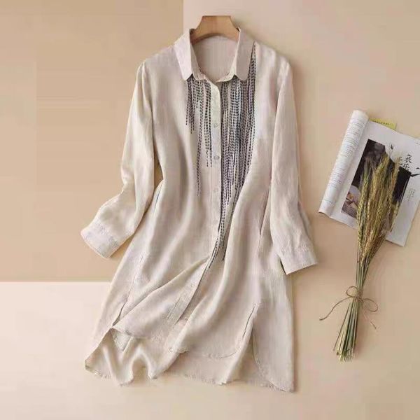 - シャツ ブラウスシャツ カジュアル 刺繍り 綿麻シャツ チュニック ゆったり 大きいサイズ 長袖 トップスM-2XL