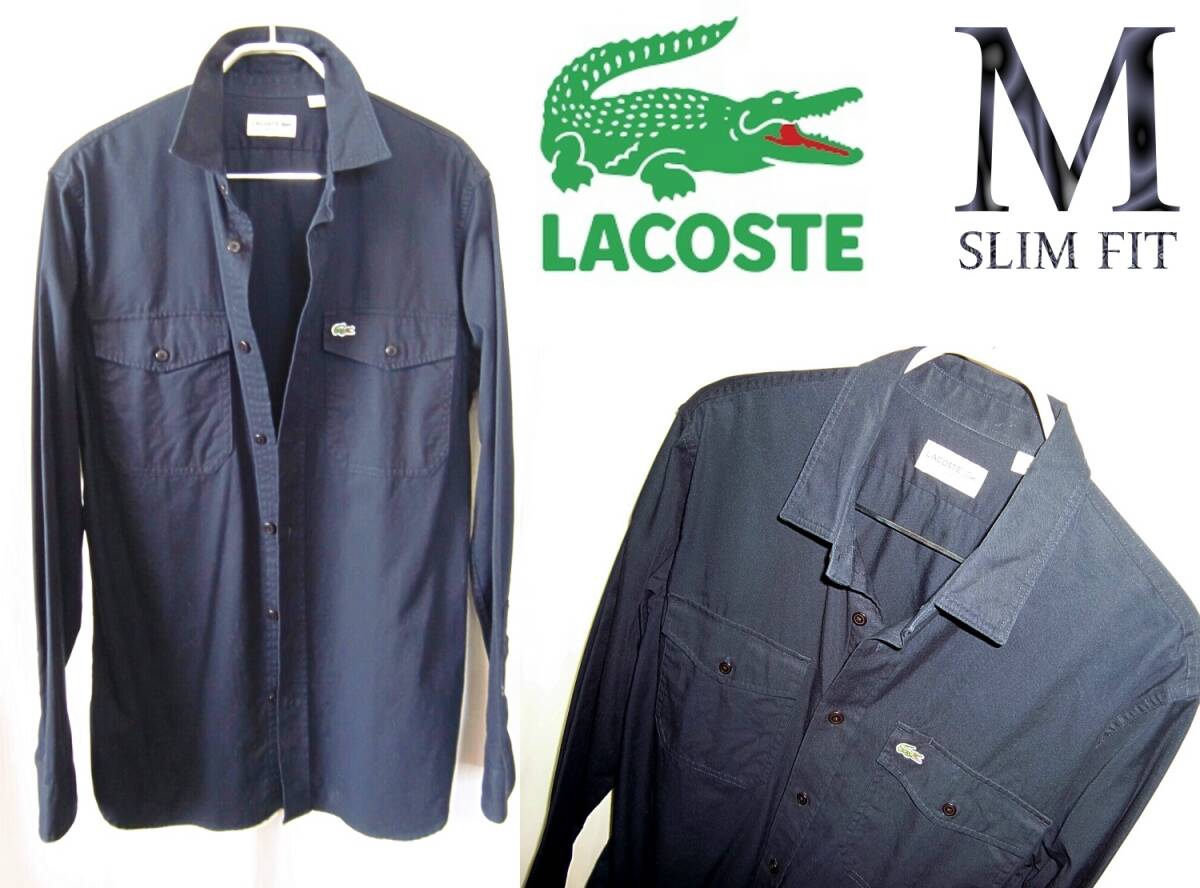 - 送料¥185・LACOSTE【長袖シャツ】US:M【管6-3】紺色