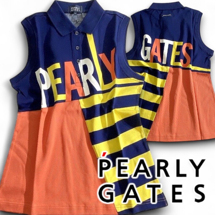 - PEARLY GATES パーリーゲイツ 定価1.9万 日本製 配色デザイン ノースリーブ ポロシャツ ゴルフ レディース 2160410 120 1 ▲022▼50818w09
