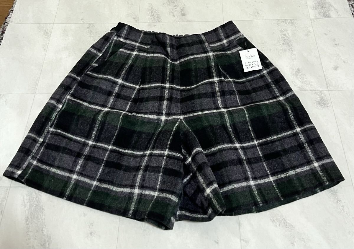 > 新品 E HYPHEN WORLD GALLERY チェックシャギータックキュロットパンツ キュロット ショートパンツ チェック Mサイズ