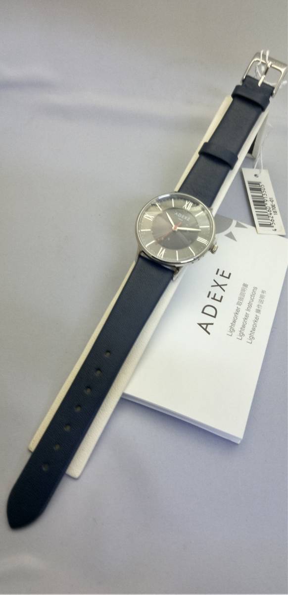 - ADEXEソーラー時計未使用基本送料無料1870E-01ブラック文字盤ダークネイビーベルト