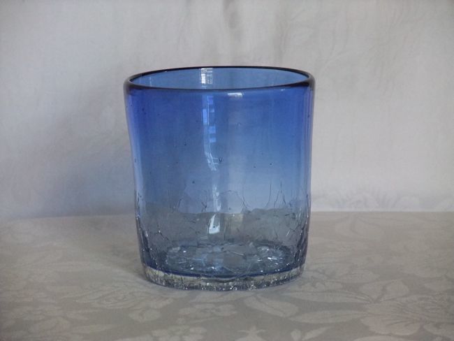 - ●【新品】★琉球ガラス☆焼きヒビ装飾・ロックグラス★青色☆★