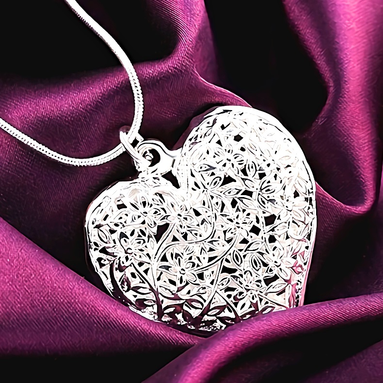 - 新品★送料無料★白銀の華 ハート透かし蔦きらめき プラチナ仕上 925シルバーネックレス 誕生日プレゼント旅行夏海連休ギフト国内発送
