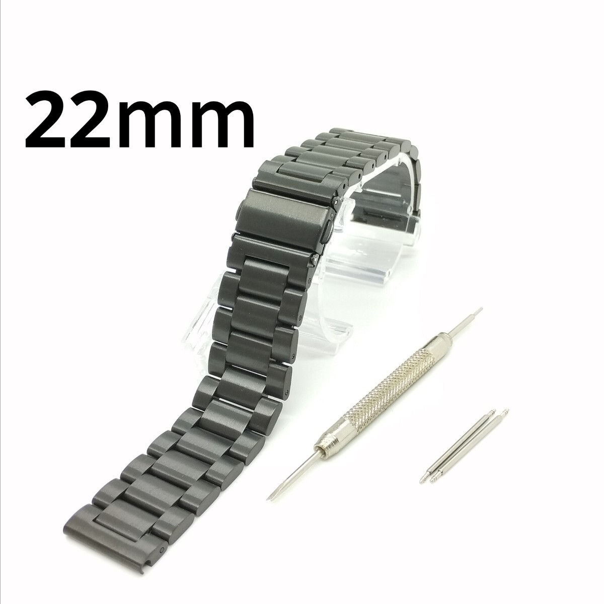 - 送料無料 腕時計 交換ベルト 黒 ブラック 3連 直カン 22mm 無垢 ステンレス バックル プッシュ式 バネ棒 バネ棒外し付 B8