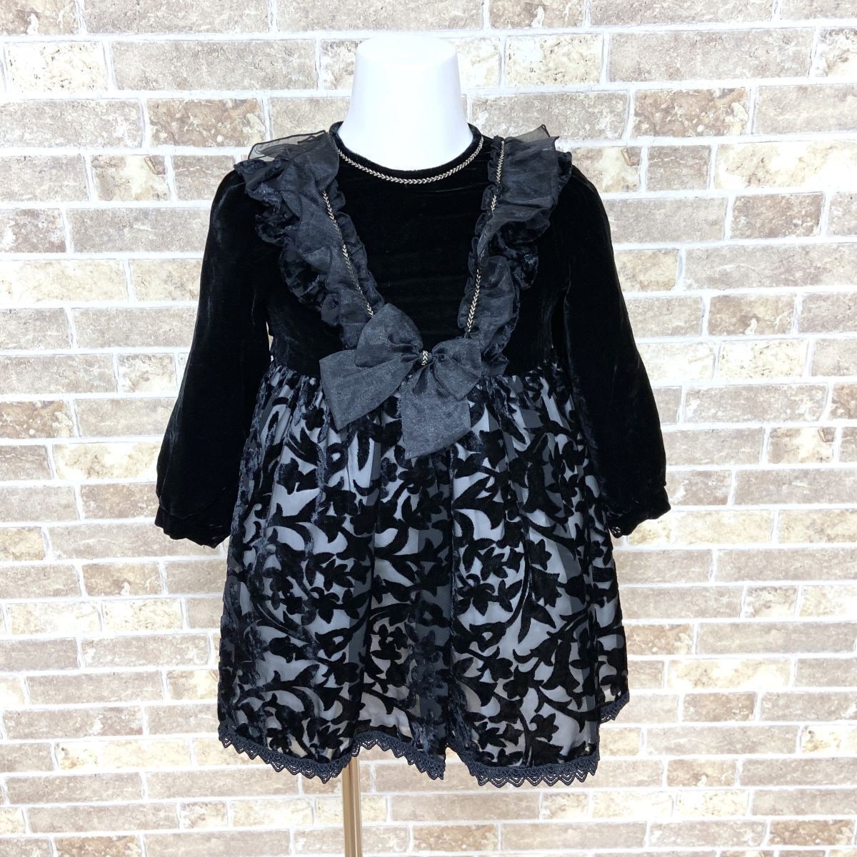 > 子供ドレス Pitty ピティ SAEKI ワンピース 100 黒ベルベット カラードレス 発表会 イベント 中古13329