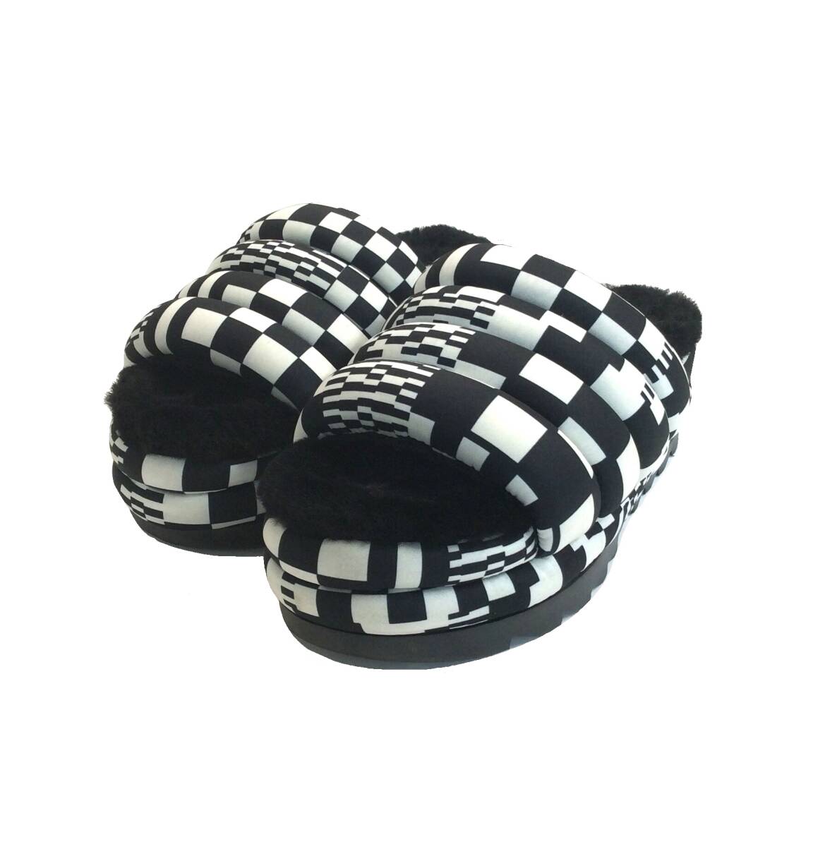 - UGG australia アグ MAXI CHECKS SLIDE マキシ チェック スライド サンダル シューズ 厚底 靴 白/黒 レディース 25㎝
