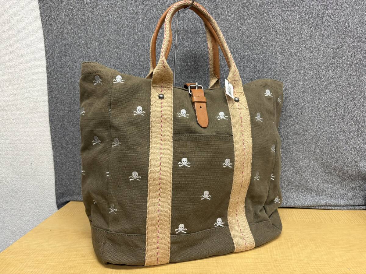 - デッドストック★ラルフローレンラグビーRALPH LAUREN RUGBYレザーハンドルキャンバススカルトートバッグ★カーキ★A1401633A