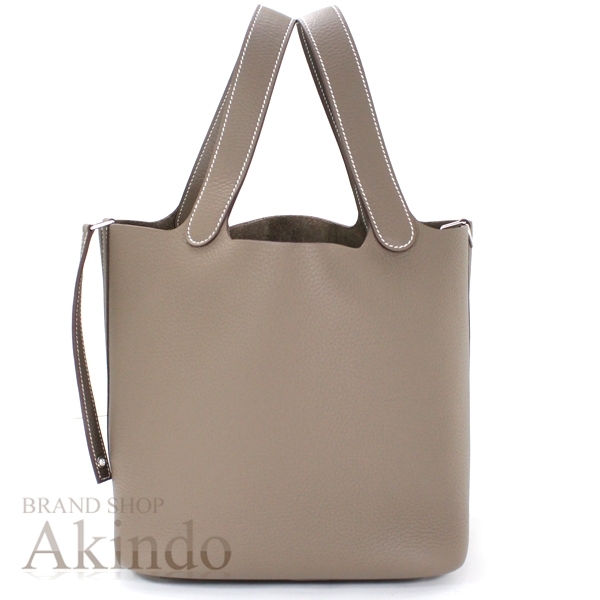 > 【新品】エルメス ピコタンロックMM 22 ハンドバッグ エトゥープ グレージュ シルバー金具 トリヨン HERMES トート レディース