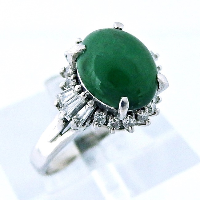 > Pt900 ★リング ◆ヒスイ3.36ct 5月誕生石 ◇ダイヤ巻き ●13.5号 【中古】 /e4999 10002824