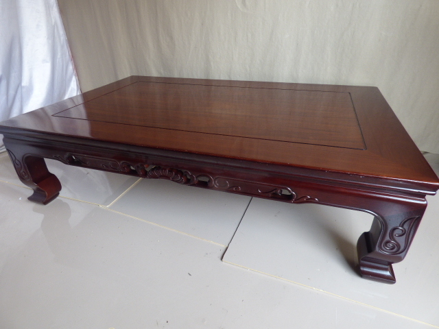 - む66【直接引取り対応*京都発】カリモク 座卓テーブル 透かし彫り 和室 木製 W135cm