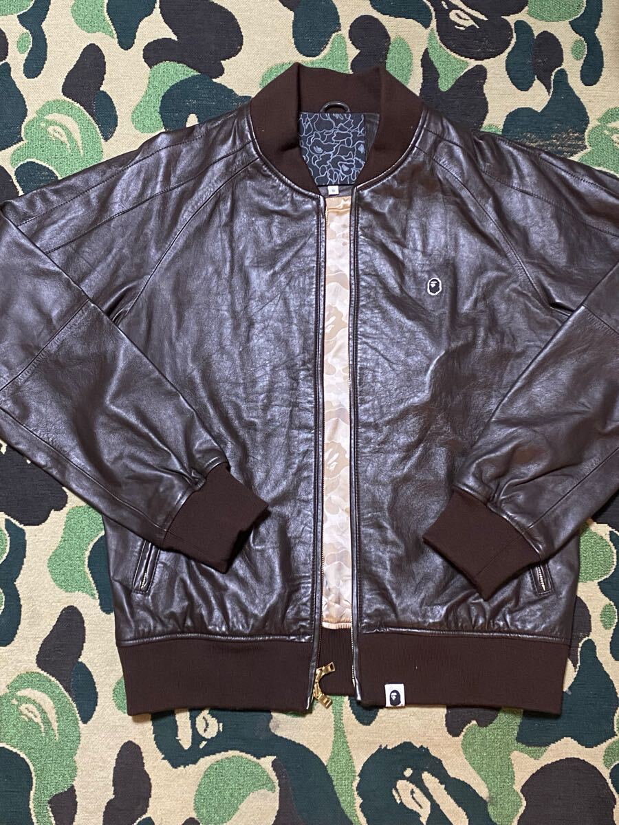 > ★青山限定★ シープスキン レザー MA-1 ジャケット Sサイズ ダークブラウン a bathing ape BAPE leather jacket エイプ ベイプ NIGO