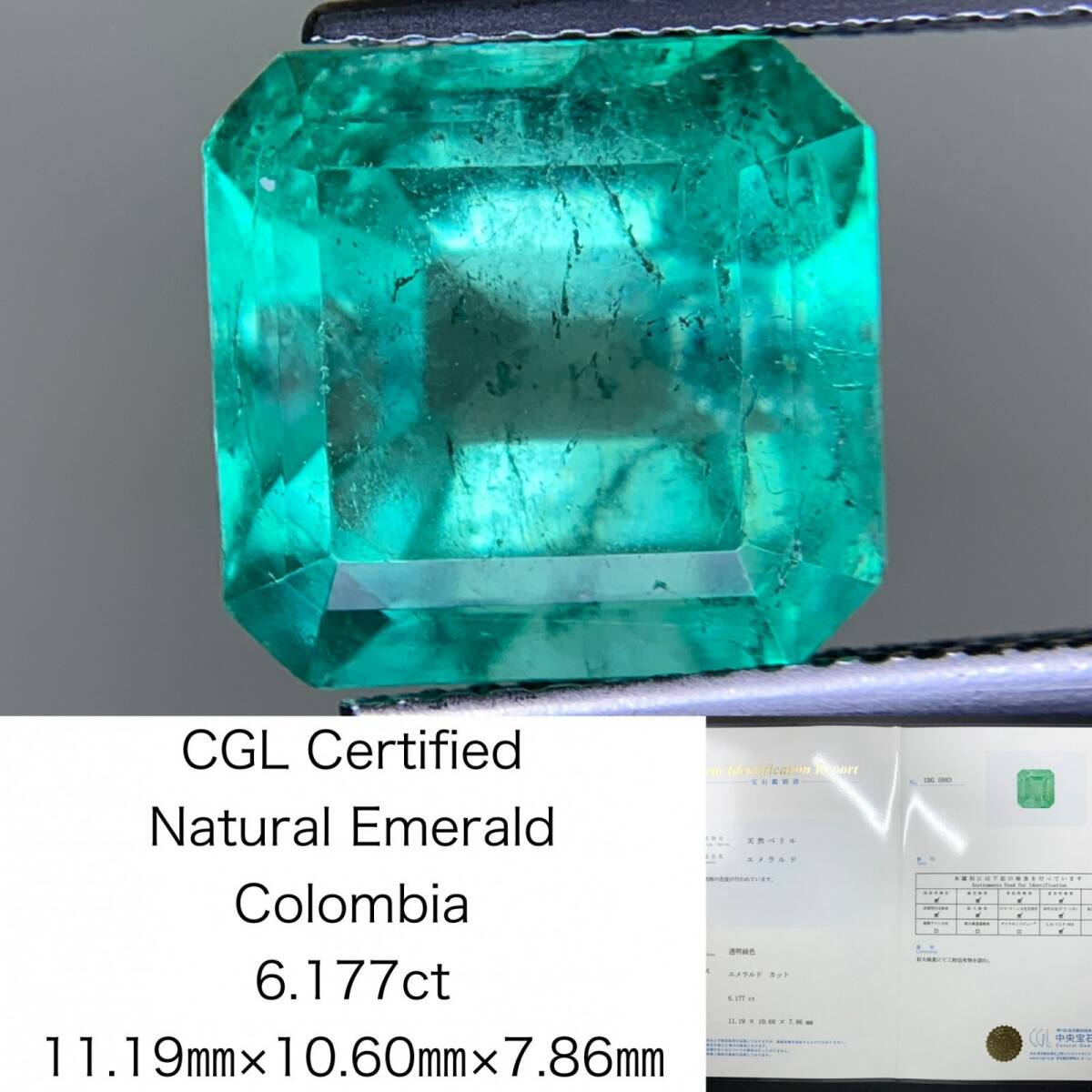 > エメラルド 天然 6.177ct 中央宝石鑑別書付き Colombia産 11.19×10.60×7.86 ルース( 裸石 ) 6343Y