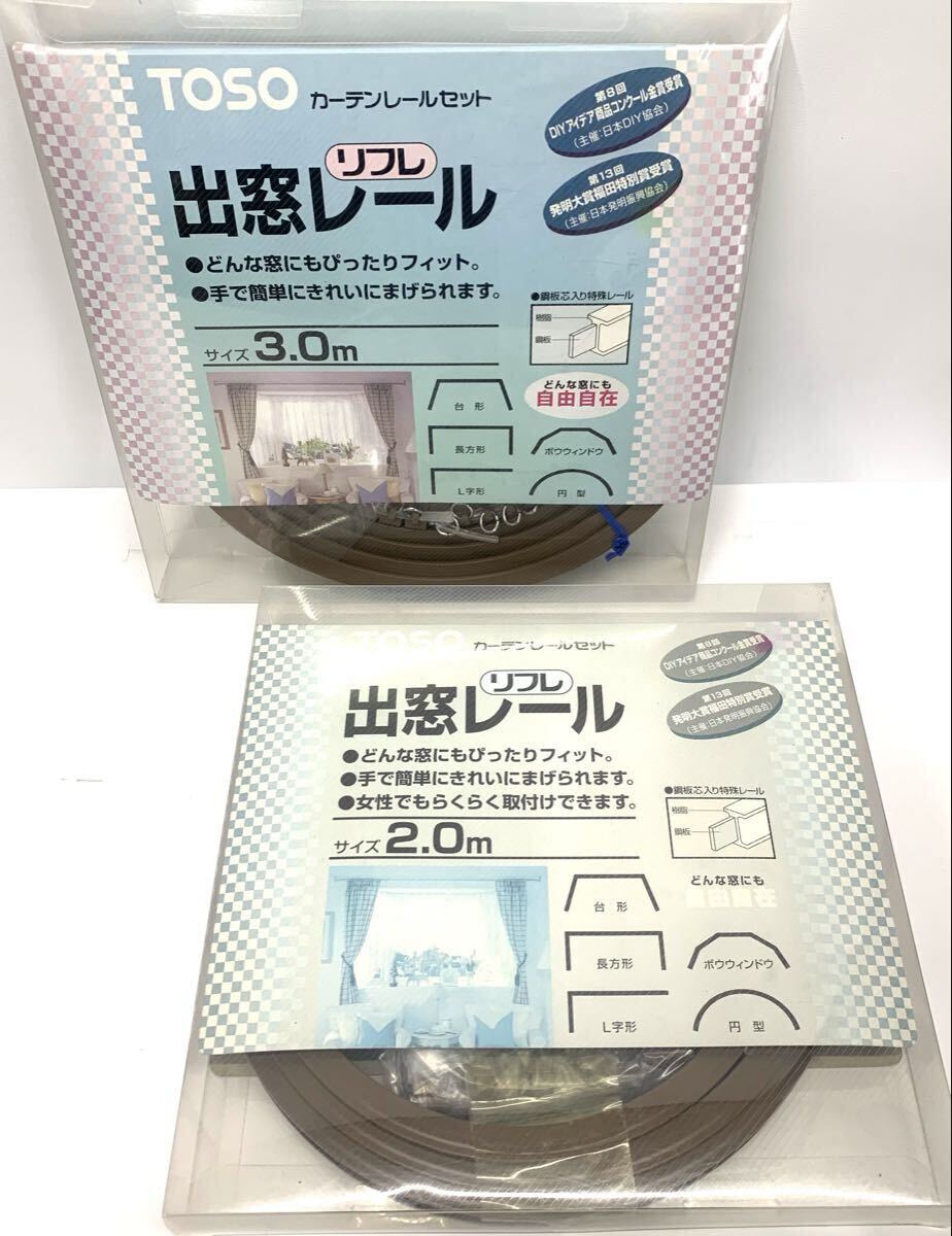 - 少訳あり未使用TOSOトーソー 出窓用カーテンレールセット[リフレ] ブラウン3.0m+2.0m 2点セット 自由自在レール パッケージ傷み特価品