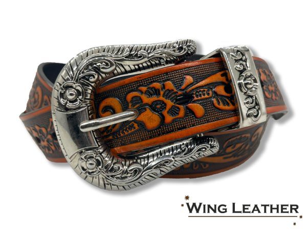 - 新品 ウエスタン レザー ベルト メンズ 本革 牛革 型押し カウボーイ ベルト プンターレ アメリカン カジュアル cnk040-CAMEL