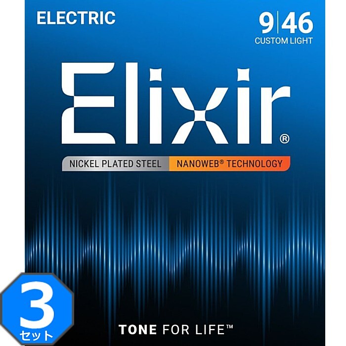 > 3セット Elixir Nanoweb #12027 Custom Light 009-046 エリクサー コーティング弦 エレキギター弦