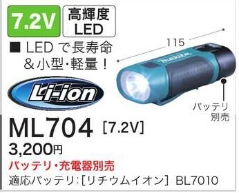 - マキタ 7.2V充電式フラッシュライト ML704 (本体のみ)■安心のマキタ純正/新品/未使用■