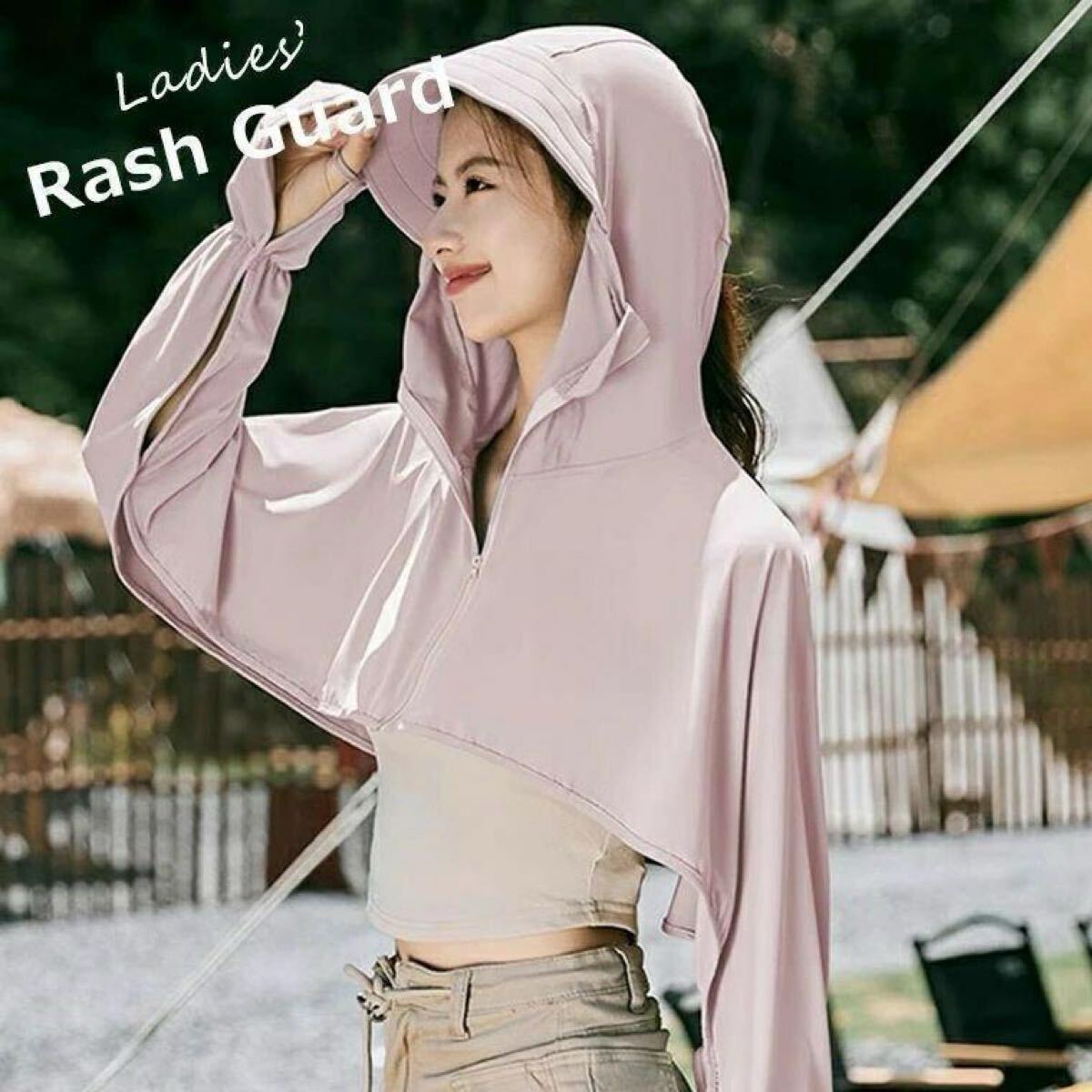 - 【ピンク】レディース UVカットケープ 肩掛けラッシュガード 長袖 アウター