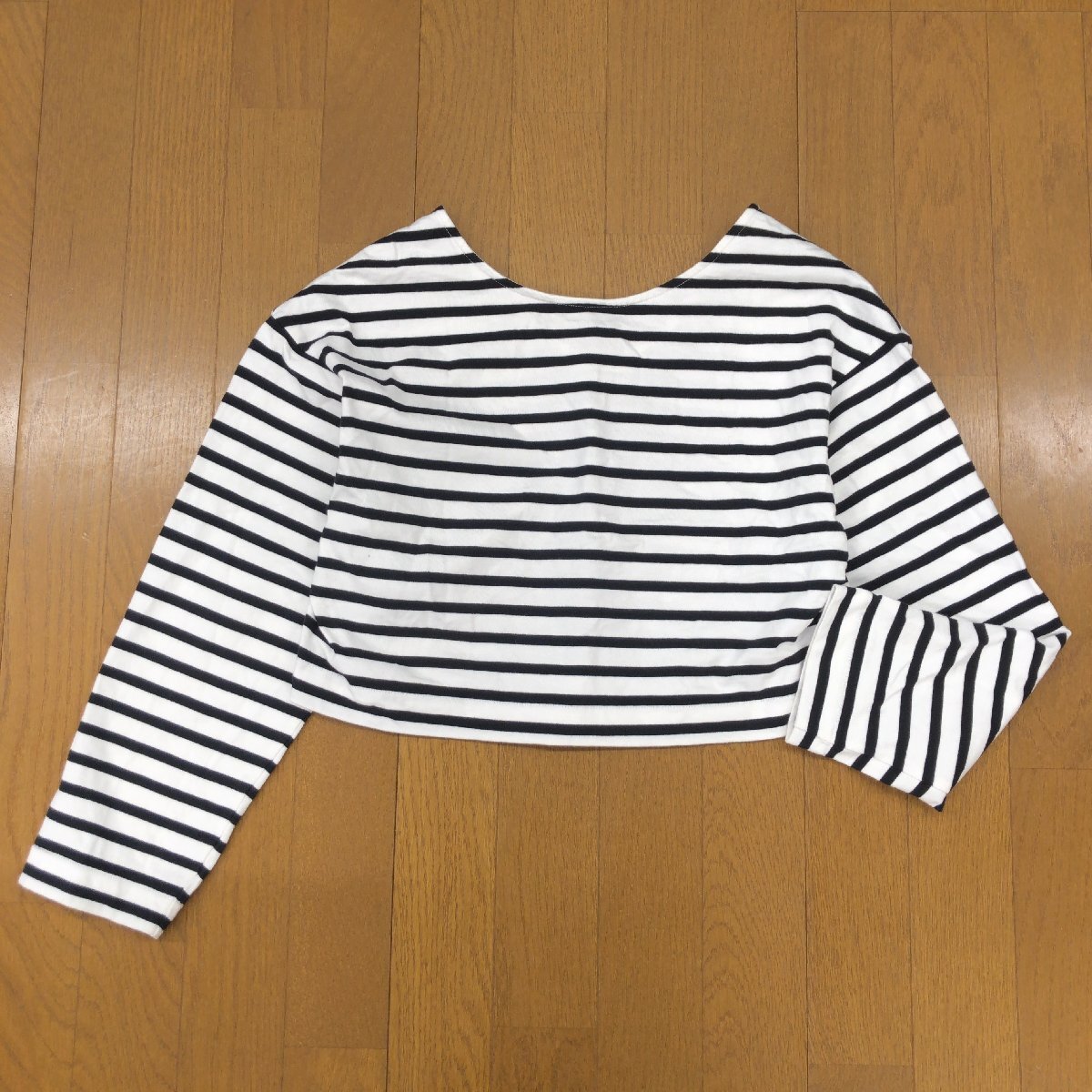 > SNIDEL スナイデル 定価8,580円 バックオープン ボーダーカット トップス F 白×黒 クロップド Tシャツ ロンT ショート丈 レディース