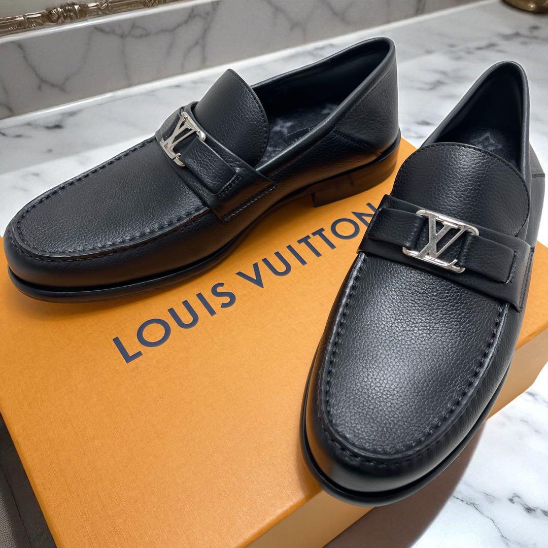 > 【未使用/箱袋付き】LOUIS VUITTON ルイヴィトン メジャーライン ビットローファー サイズ7 黒 モノグラム カーフレザー 起毛 メンズ 革靴