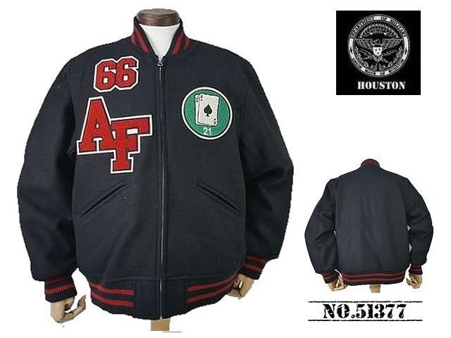 > 【送料無料 35%OFF】HOUSTON ヒューストン メルトン アワードジャケット 「USAFA」 NO.51377 BLACK_Lサイズ