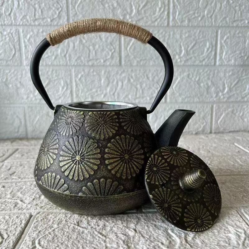 - 1000ml 鉄急須 伝統模様 南部鉄器 鉄急須 鉄瓶 鉄器 IH 対応 鉄やかん 鉄分補給 蓄熱性に優