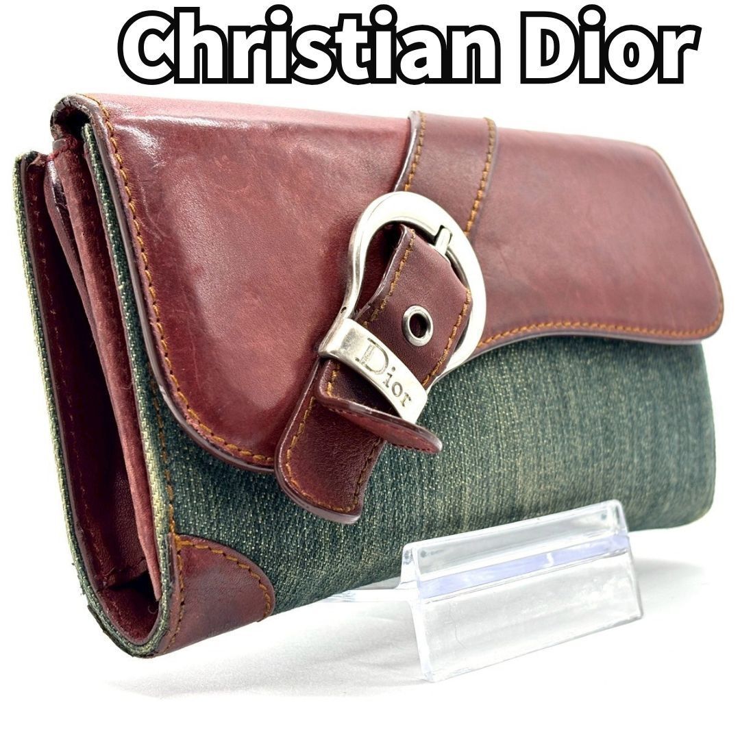 - Christian Dior クリスチャンディオール 長財布 サドル デニム レザー ブルー ブラウン