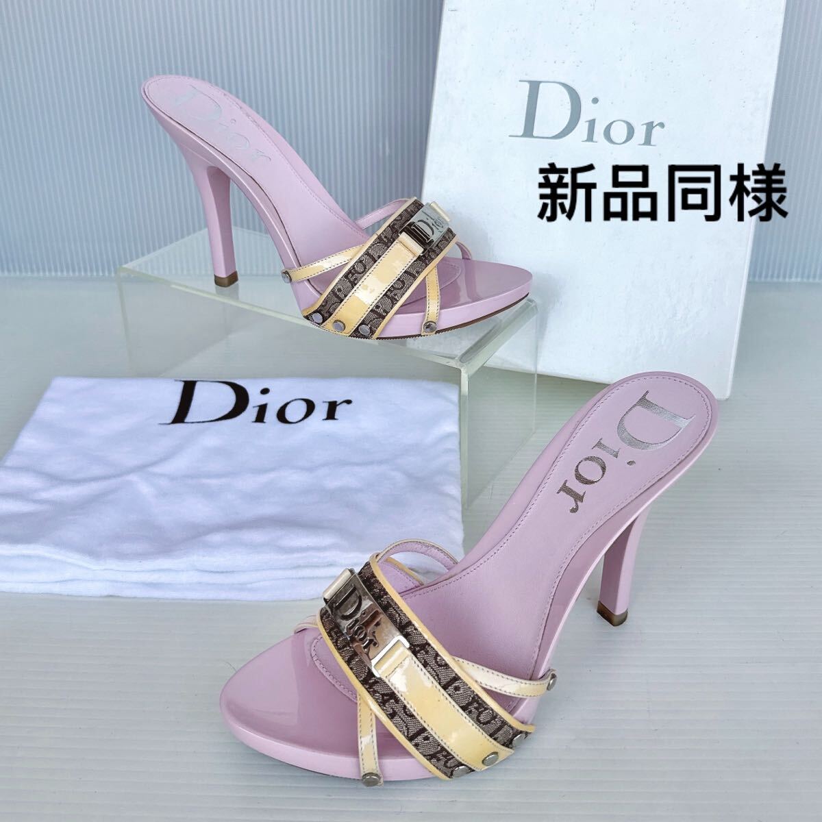 - Christian DIOR ディオール ロゴ入り オブリック ミュール ハイヒール パンプス サンダル トロッター 34.5 レーディス 靴 シューズ
