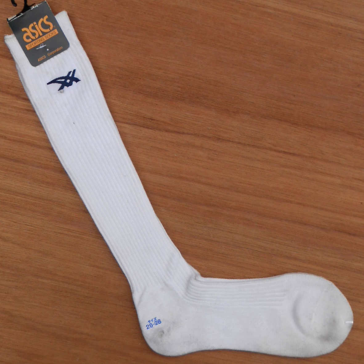 - 未使用 '80s asics SPORTING SOCKS バレーボール ハイソックス アシックス 26cm~28cm 白x紺 バッタ刺繍 ヴィンテージ 27cm デッドストック