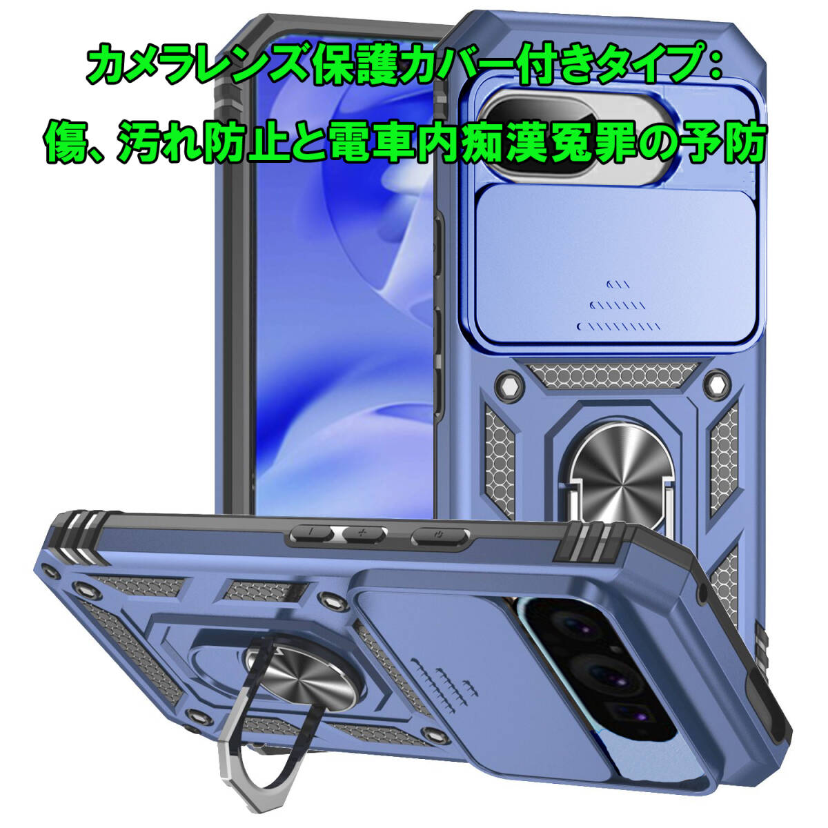 - G ブルー Google Pixel 9a ケース 本体 カバー 指リング 画面 保護 守る グーグル ピクセル 米軍 衝撃 頑丈 スタンド ホルダー 最強