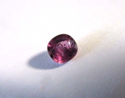 紫ピンクのサファイアです。インクルージョンがありますが、透明感とテリがあります。UVライトで少し赤く蛍光します。非加熱。
