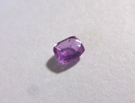 ピンク紫のサファイアです。インクルージョンがありますが、透明感と明るいピンクのテリがあります。UVライトでピンクに蛍光します。非加熱。