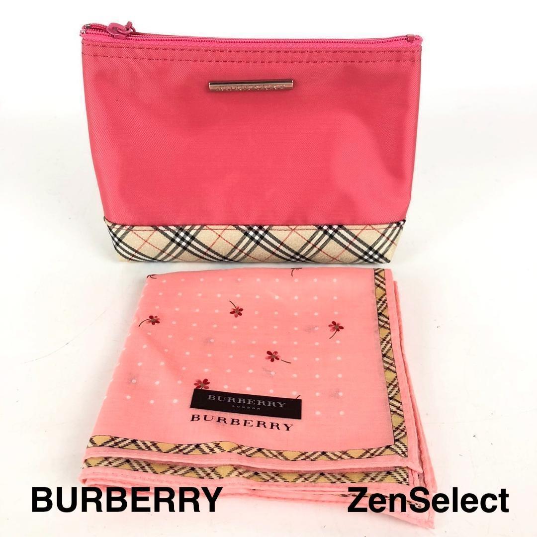 - BURBERRY バーバリー ポーチ&ハンカチ セット ピンク レディース ハイブランド 美品 送料無料