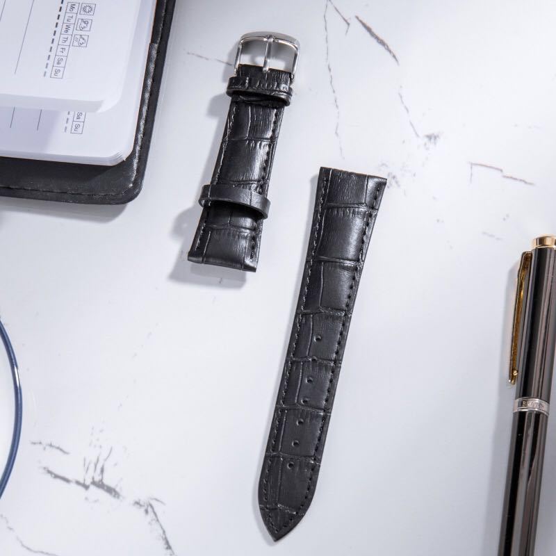 - 時計ベルト20mm 型押し クロコ押し 牛革バンド 男女兼用 セール限定価格 2本セット 色選び自由 ブラック/ブラウン