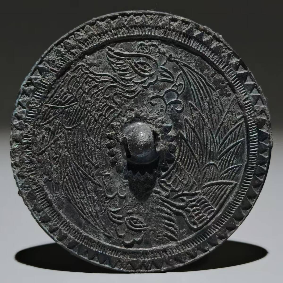 - 時代旧蔵 唐の時代 青銅双鳳小手鏡 銅製 古美術 細密細工 廃寺旧蔵 廃寺買出品 8.20