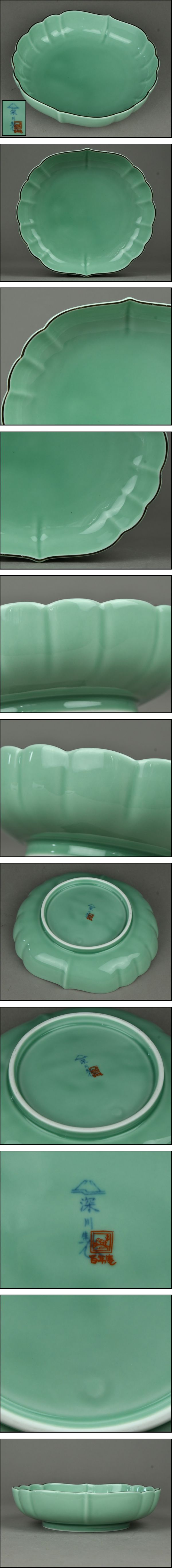 - 【ACT】宮内庁御用達【深川製】百年庵 笹青磁 菊中割 鉢 菓子器 茶道具 A7-710C