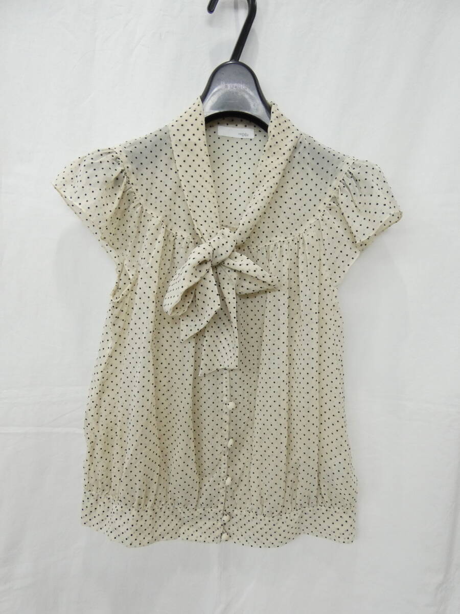 - ▼index/インデックス▼ボウタイフレンチスリーブブラウス シフォン/M/ライトベージュ・ドット柄